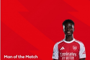 英超官方在赛后宣布,萨卡以33%得票率被球迷票选为本场比赛的全场最佳球员。