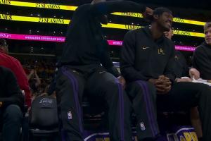 超级硬!海斯夺球补篮2+1 与老詹击掌撞胸&对77竖中指&布朗尼怒吼