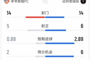 体育资讯11月24日讯 在美职联1/4决赛,迈阿密国际4-0大胜辛辛那提FC,以下为双方全场数据对比:
